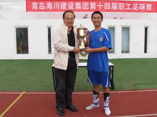 繼10月9日分組預(yù)賽之后,17日(星期天)上午,海川集團“海川建設(shè)杯”第14屆職工足球賽在市北區(qū)中聯(lián)運動公園足球場進行了半決賽和決賽。吳鑫董事長和欒恒忠副總裁蒞臨球場為球員鼓勁,并在閉幕式上分別為前三名球隊頒獎。決賽是在三分公司足球隊和物流分公司足球隊之間進行的,這是一場精彩的進球大戰(zhàn),最終三分公司以5:4的比分險勝物流分公司隊,獲得冠軍;物流分公司獲得亞軍;海川總部以4:2戰(zhàn)勝二分公司隊獲得第三名。