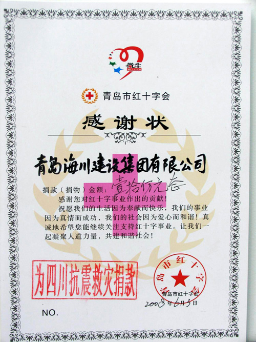 四川抗震救災(zāi)捐款紅十字感謝狀