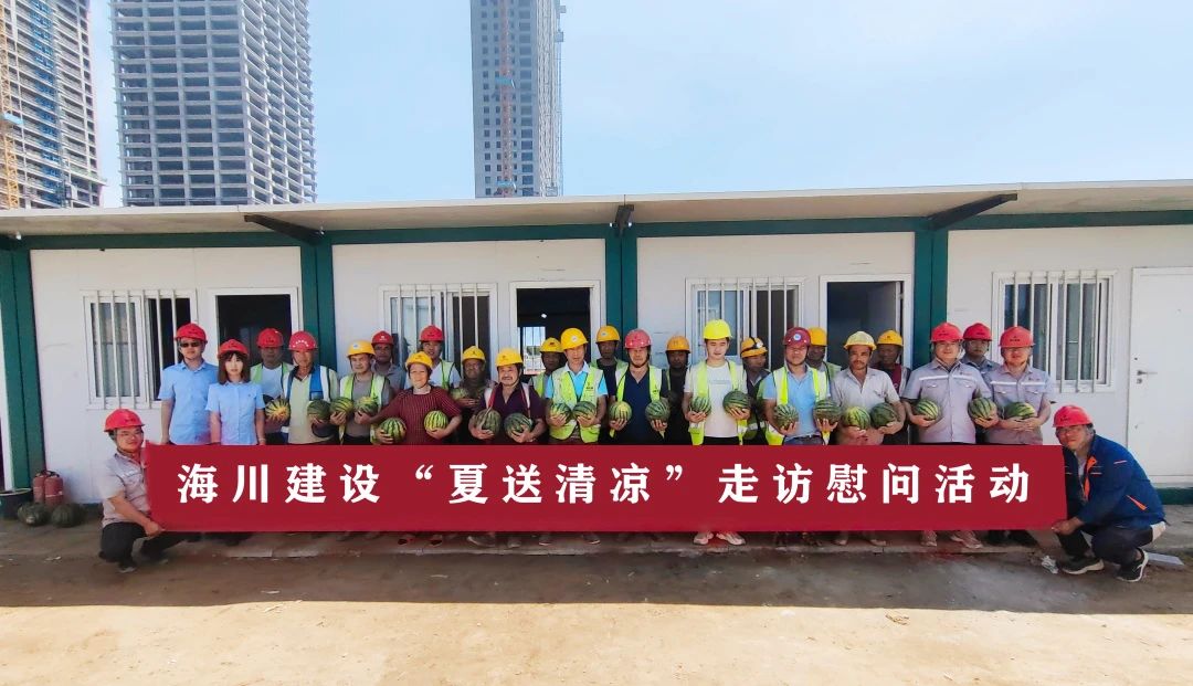 助力共建“一帶一路”高質(zhì)量發(fā)展 董事長吳鑫一行走訪慰問華聯(lián)建科埃及項(xiàng)目部2023-11-3011月2日,青島海川建設(shè)集團(tuán)黨委書記、董事長吳鑫一行來到埃及新行政首都中央商務(wù)區(qū)項(xiàng)目,走訪了由海川建設(shè)旗下華聯(lián)建筑科技集團(tuán)(青島)有限公司負(fù)責(zé)裝修的D02樓棟,現(xiàn)場(chǎng)查看了施工完成情況,聽取項(xiàng)目部的工作匯報(bào),對(duì)項(xiàng)目下一步竣工工作做出安排,并對(duì)施工人員發(fā)放慰問品,勉勵(lì)項(xiàng)目積... -